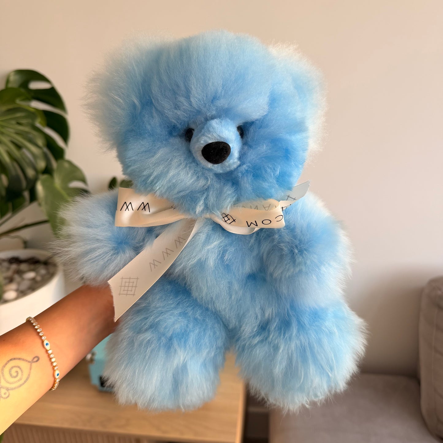 Our premium Blue Alpaca Teddy Bear is a unique memorable gift for a loved one. Definitely a gift that will make everyone smile! From children to adults every one will non stop petting their new Blue alpaca bear plushie!